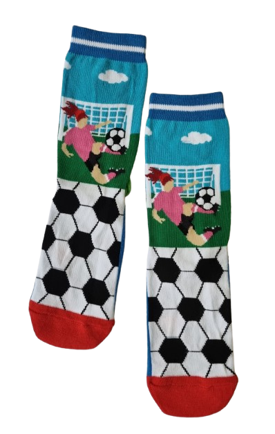 - чорапите в горната част изобразяват футболна сцена, а в долната класическа футболна топка