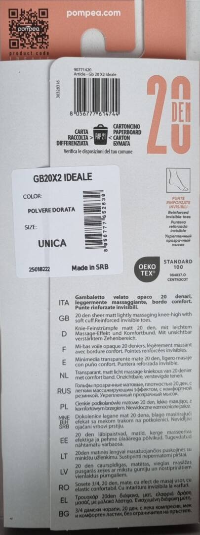Дамски 3/4ти чорапи с ликра Pompea ideale 20 den – 2 чифта
