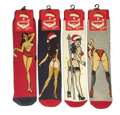 . чудесна комбинация от весели мъжки Коледни чорапи с провокативно танцуващи Снежанки